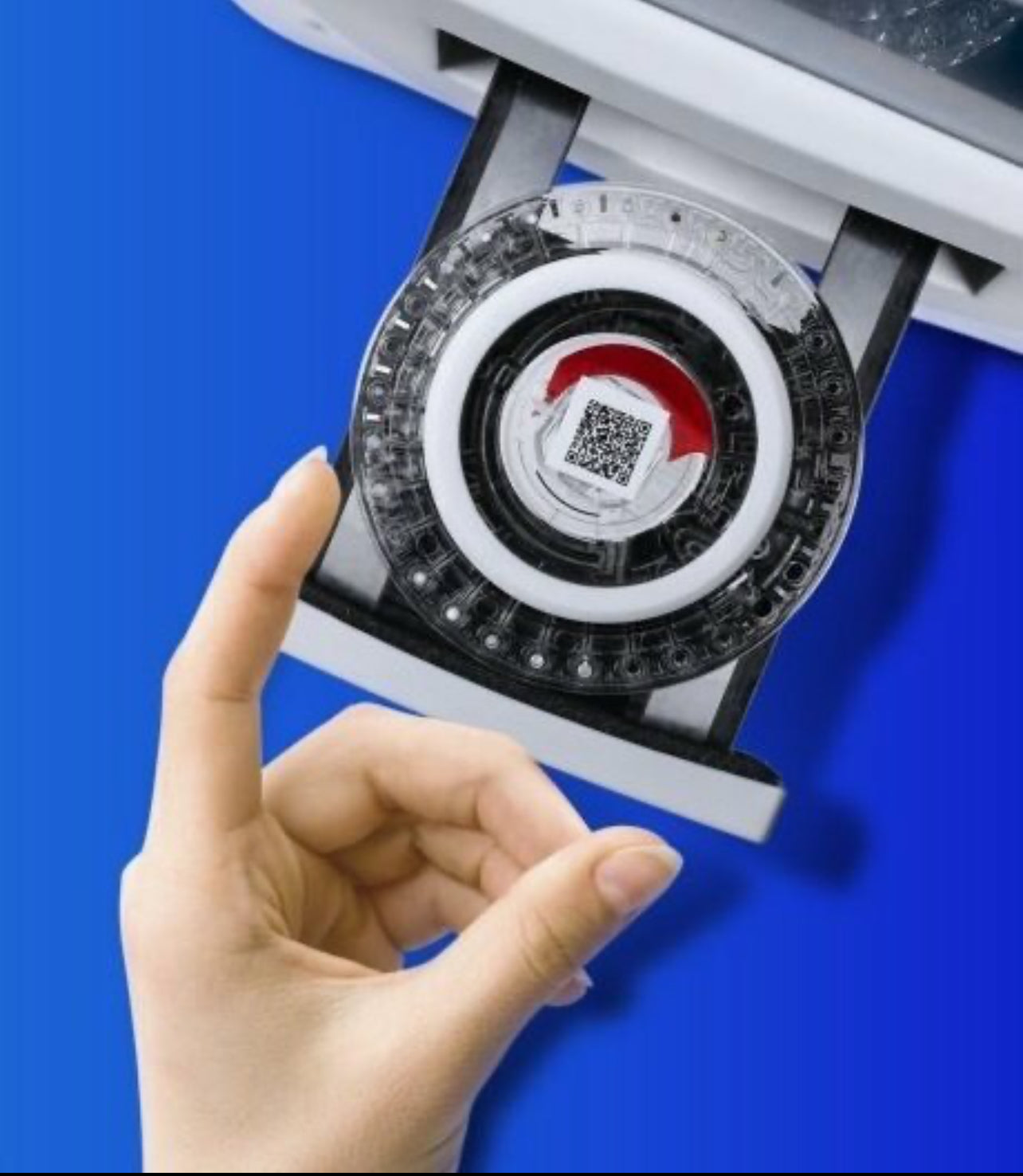 1. Insert Sample (100ul blood) 2. Insert Rotor (12 minutes running)