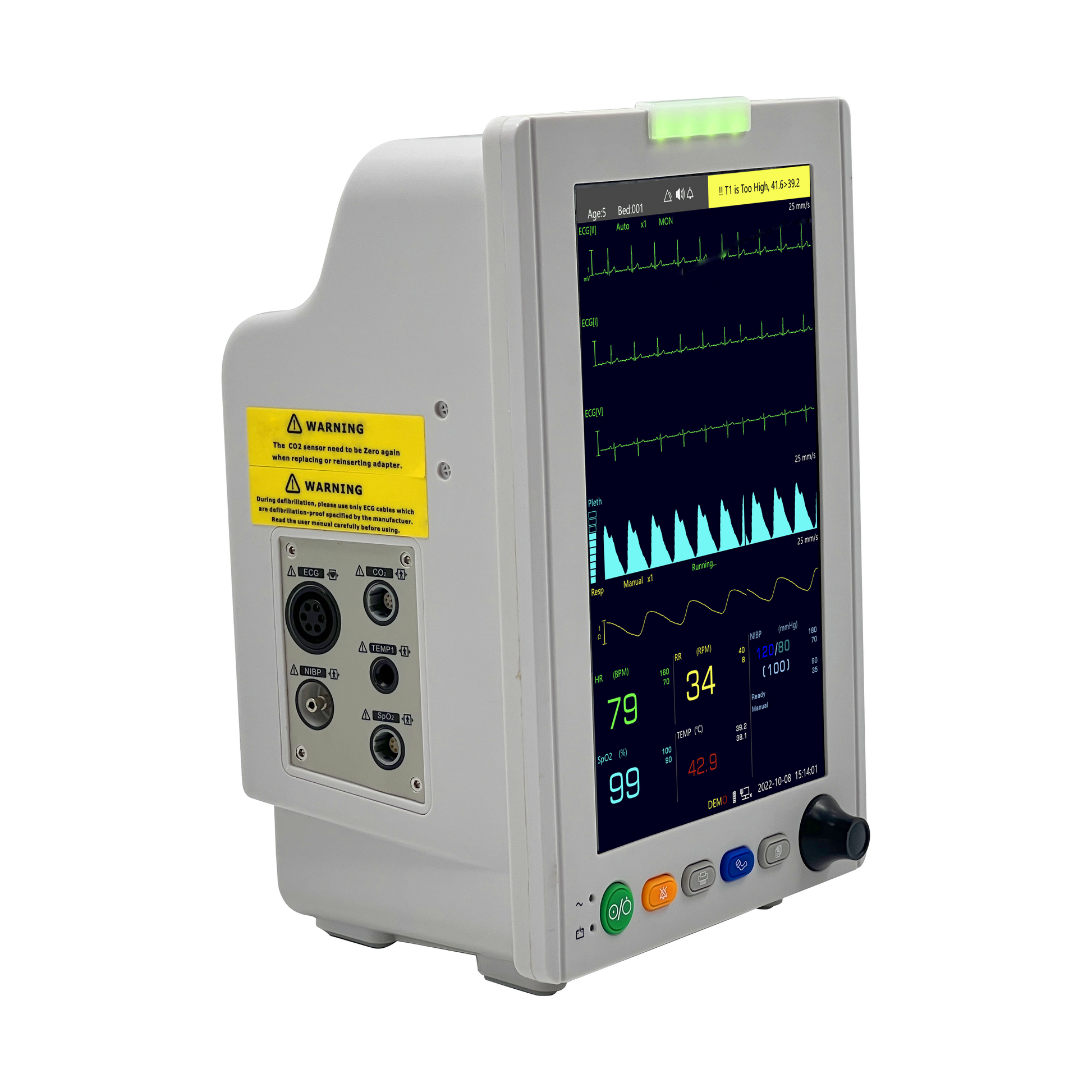 - Parameters: SpO2, ECG, Heart Rate,NIBP, TEMP*2, RESP, Etco2 (Optional: 2*IBP)